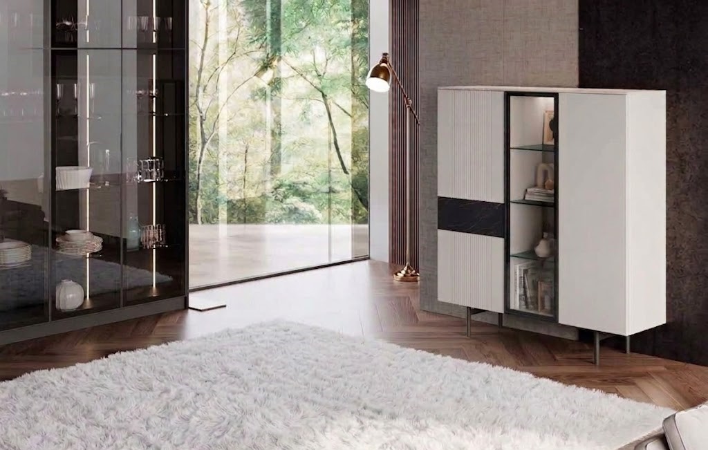 Kit LED Integrado: Equipado com iluminação interior em LED, que não só facilita a visualização dos objetos como cria um ponto de luz ambiente sofisticado, ideal para destacar cristais ou peças de decoração através da vitrine.