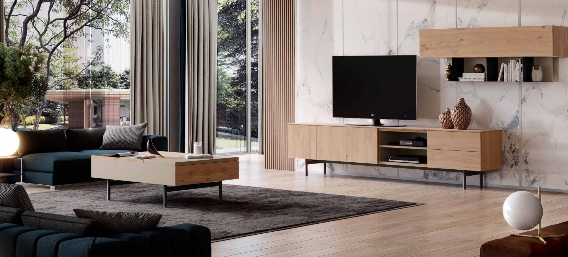 - Móvel TV Creta: Com ampla arrumação, sistema de abertura por toque e pés em