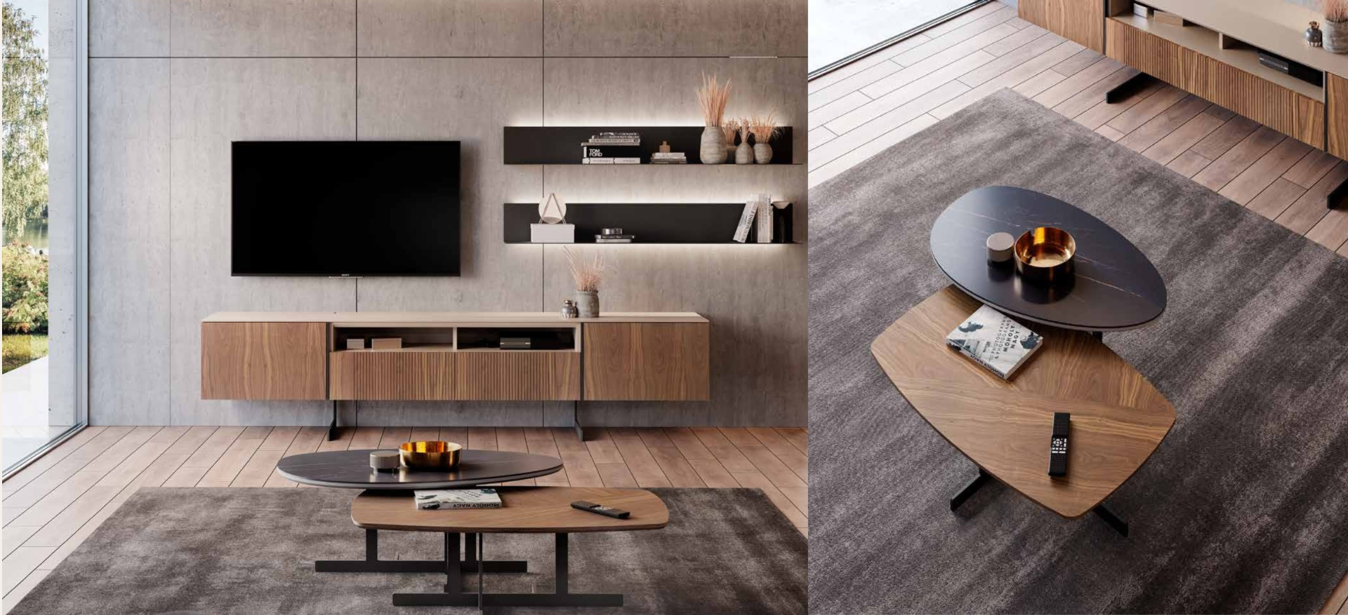 contemporâneas se funde com a textura orgânica da madeira e o rigor industrial
