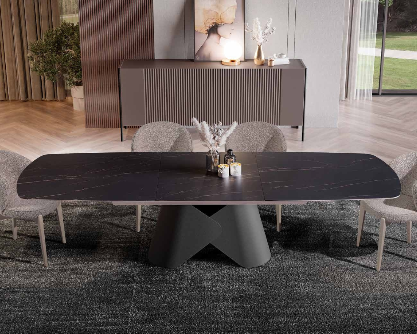A Mesa de Jantar Rhodhes é uma peça de afirmação que