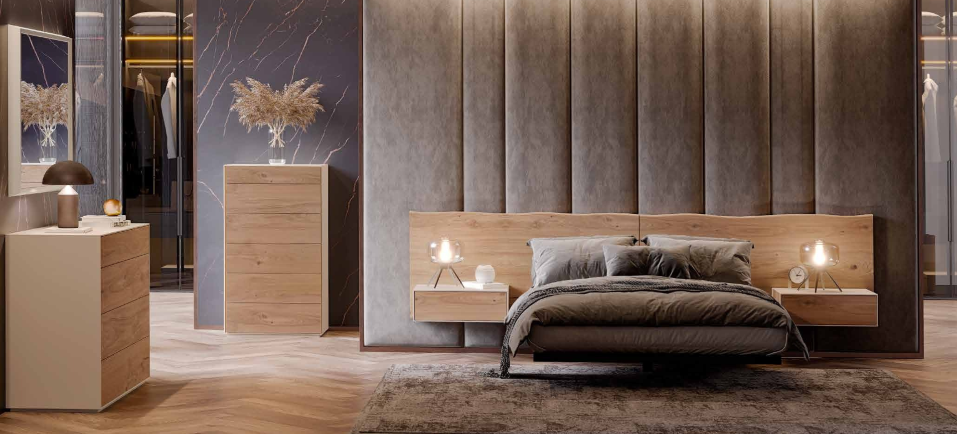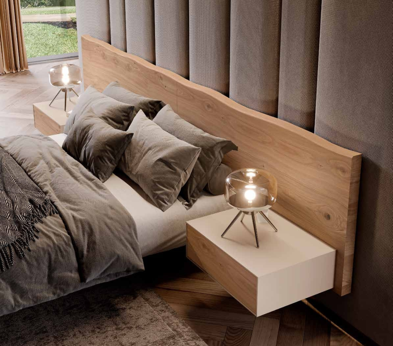 é a Cabeceira Creta, que apresenta um painel de madeira com acabamento