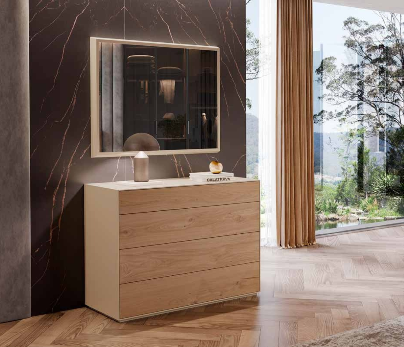 natural e moldura lacada.